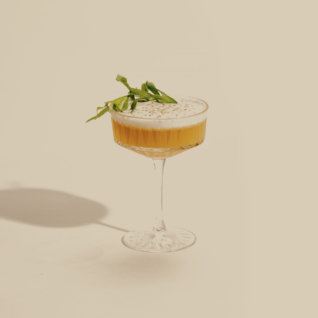 Add all ingredients except into a shaker tin with ice and shake until chilled. Strain the cocktail back into the tin, discarding ice, and dry shake for 15 seconds. Double strain into a chilled coupe.