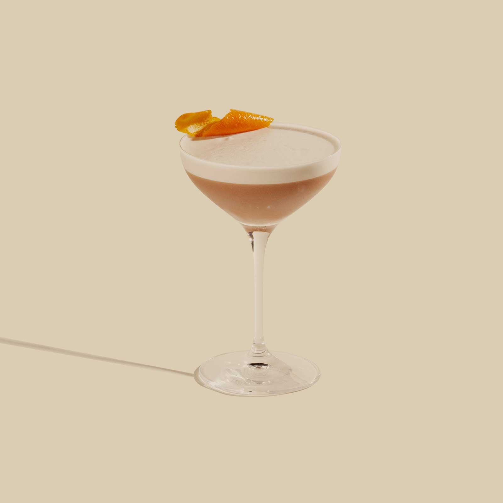 Reverse dry shake all ingredients in tin and double strain into coupe. Garnish with orange twist.