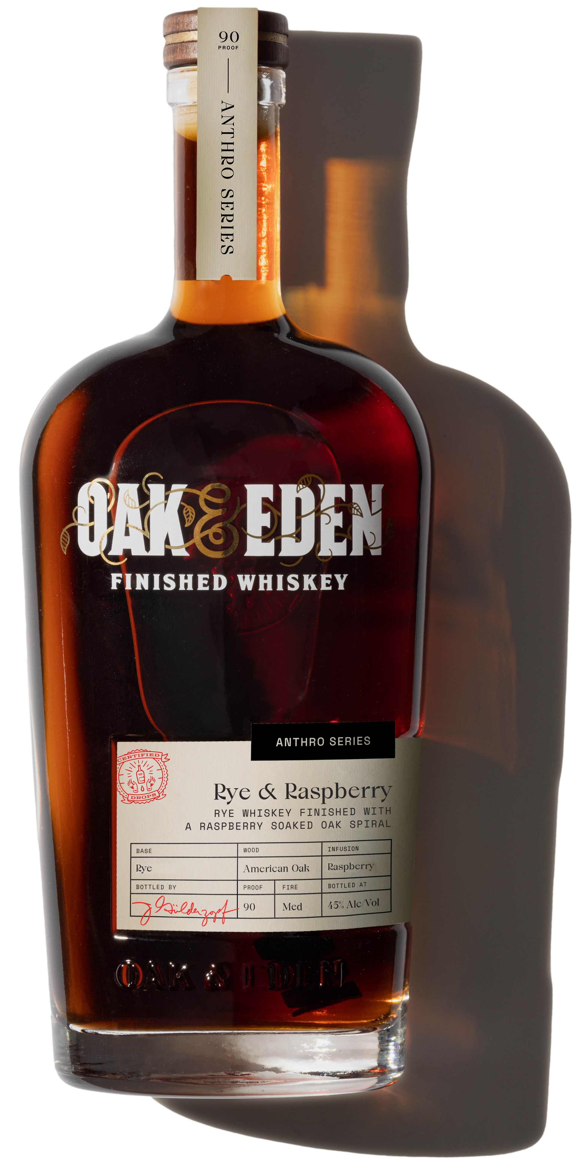 Rye & Raspberry is an intentional dance between spicy and sweet, intertwining a bold whiskey with a soft berry finish. We begin the process with a rye made from 95% rye, 5% malted barley, then aged in charred American White Oak barrels. After aging, we add a twist – an American Oak spire, seasoned, toasted, and infused with raspberry liqueur, imparting sweet, bright flavors, and notes of vanilla, plum, and cinnamon.
