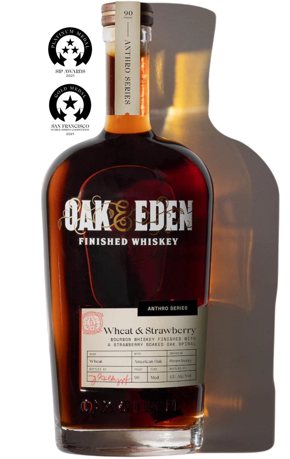 Wheat & Strawberry is the sweetest expression of whiskey drinkin'. We begin the process with a wheated bourbon made from 51% corn, 45% wheat, 4% malted barley, then aged in charred American White Oak barrels. After aging, we add a twist – an American Oak spire, seasoned, toasted, and infused with strawberry extract, imparting sweet, smooth flavors, and notes of honey, candied fruits, and caramelized sugar.